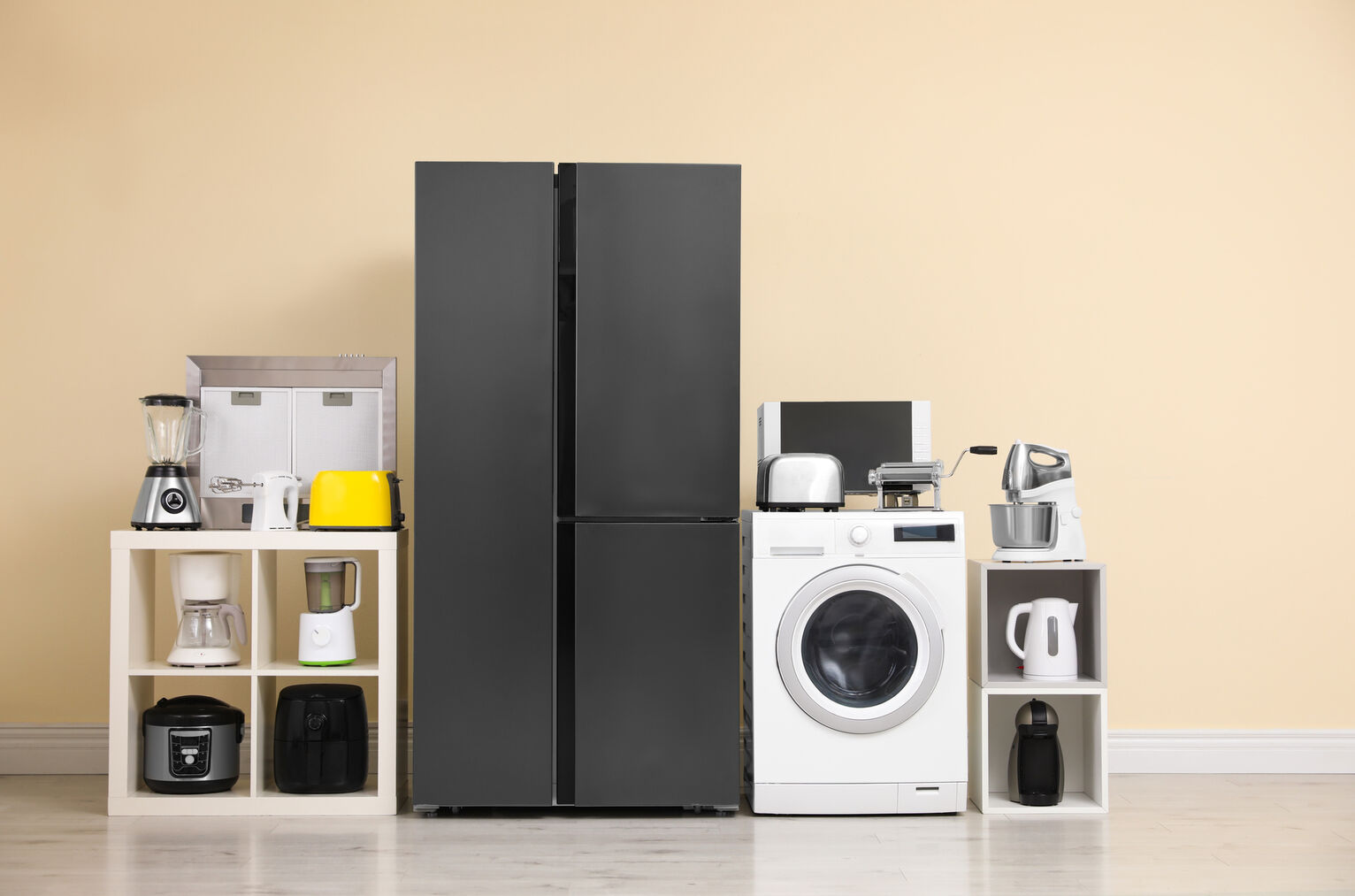 一人暮らしを始めるにあたり、冷蔵庫・洗濯機・電子レンジ・テレビといった基本的な家電をまとめて借りたい方も多いはず。多くのサービスでは、こうした新生活に必要なアイテムが揃ったお得な「家電セット」が用意されています。